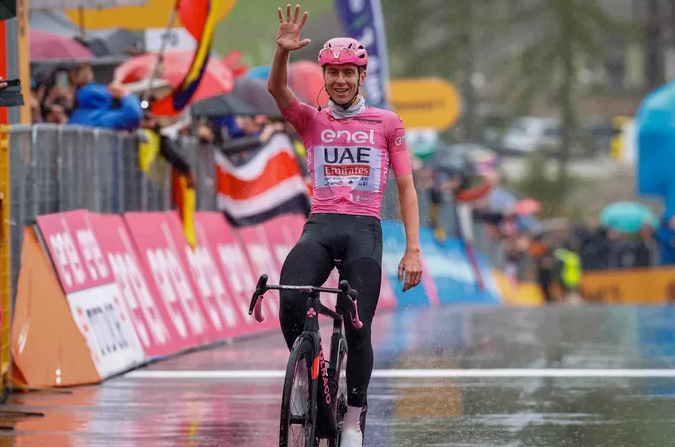 Op de top van de Monte Grappa had Pogacar een voorsprong van bijna twee minuten op de eerste achtervolgers: Martínez, Rubio, Tiberi en Pellizzari, die nog als tweede boven wist te komen. Het kwartet Thomas, Storer, O’Connor en Valentin Paret-Peintre volgde door het werk van laatstgenoemde niet veel later. In de afdaling had Pocagar alle tijd om uiteindelijk te zegevieren. Hij boekte zijn zesde ritzege van deze ronde en breidde zijn voorsprong in het algemeen klassement nog wat verder uit.