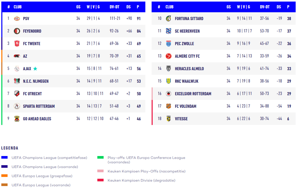 EINDSTAND EREDIVISIE 2023-2024